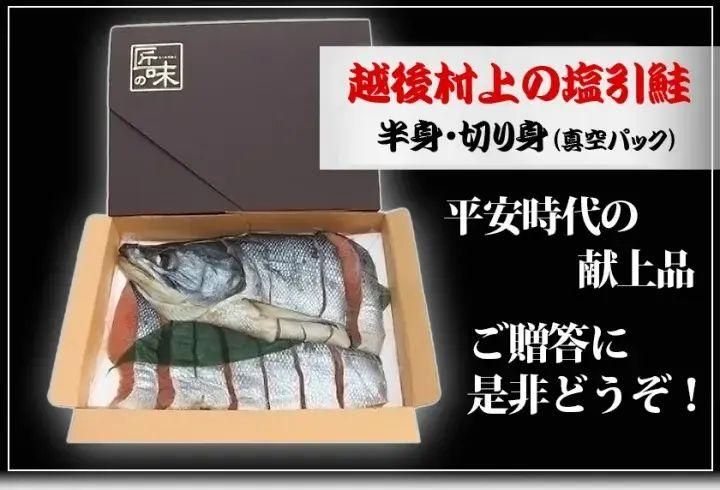 三面川でとれる脂ののった鮭を、伝統の技で仕上げた日本最高の塩引き鮭です。
